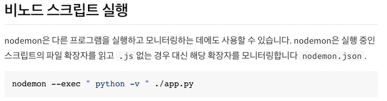 npm 사이트에서 nodemon을 보면 다른 프로그램도 실행시켜준다고 나와있어요.